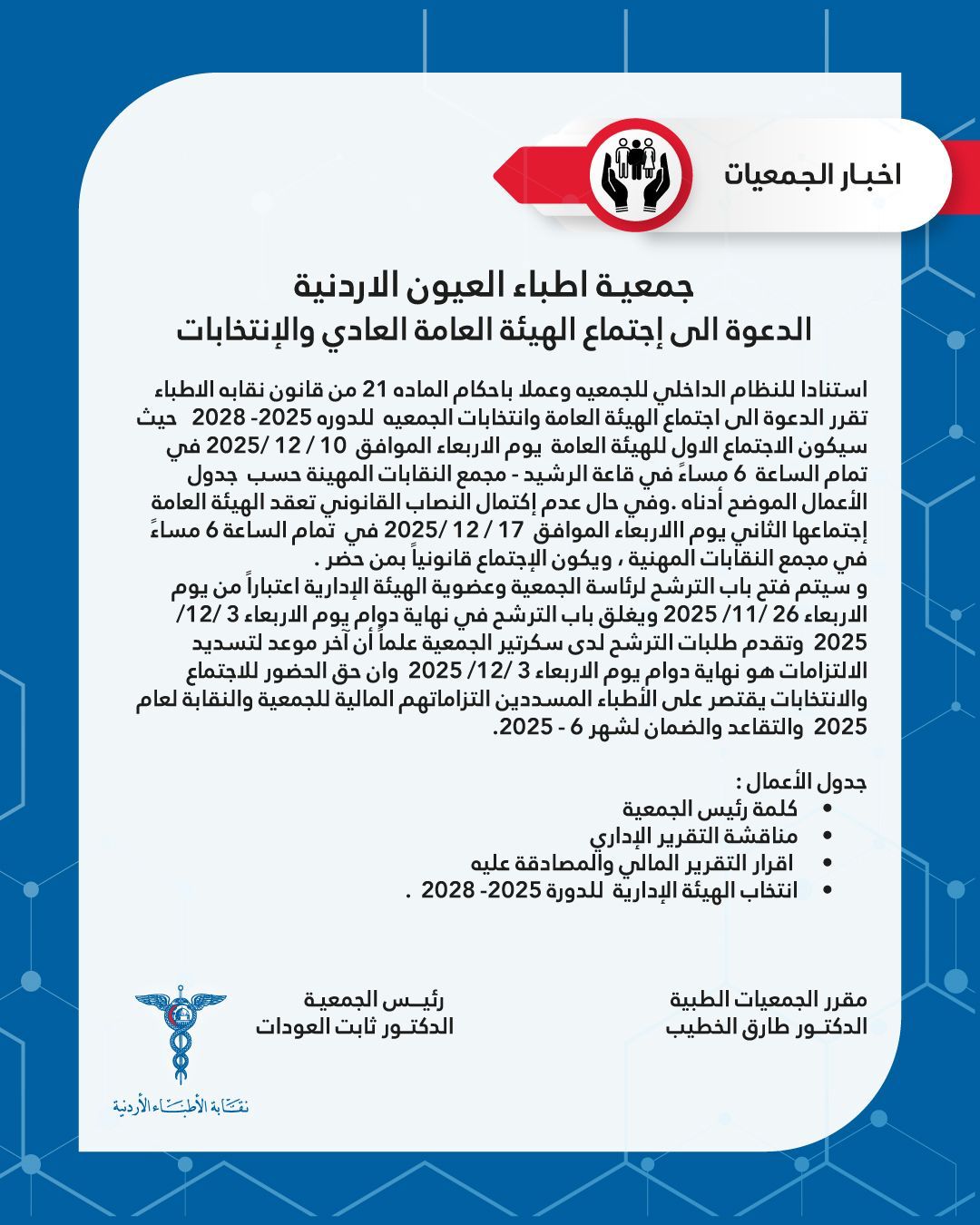 جمعية اطباء العيون تعلن عن موقع و الموعد...